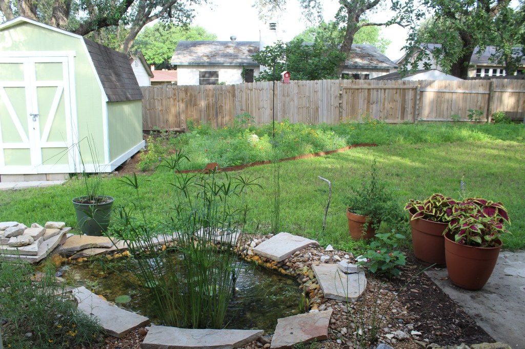 Since the start of the pandemic, my partner and I have worked to transform our San Antonio, TX backyard to a wildlife-friendly space. It began with a small garden pond just outside of our dining room picture window.