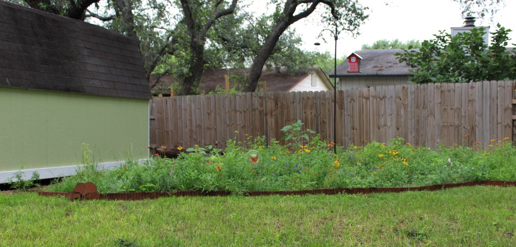 After CPS (our utility company) tore up our backyard servicing the cable in the backyard and we began diversifying the lawn (it was mostly grass and false mallow) and planting a native wildflower pollinator garden in the back of the yard.