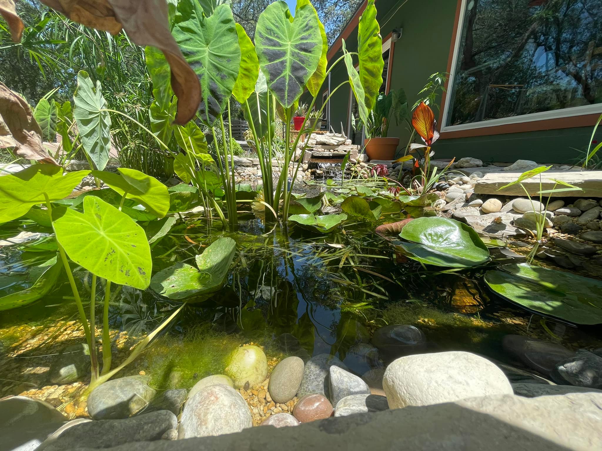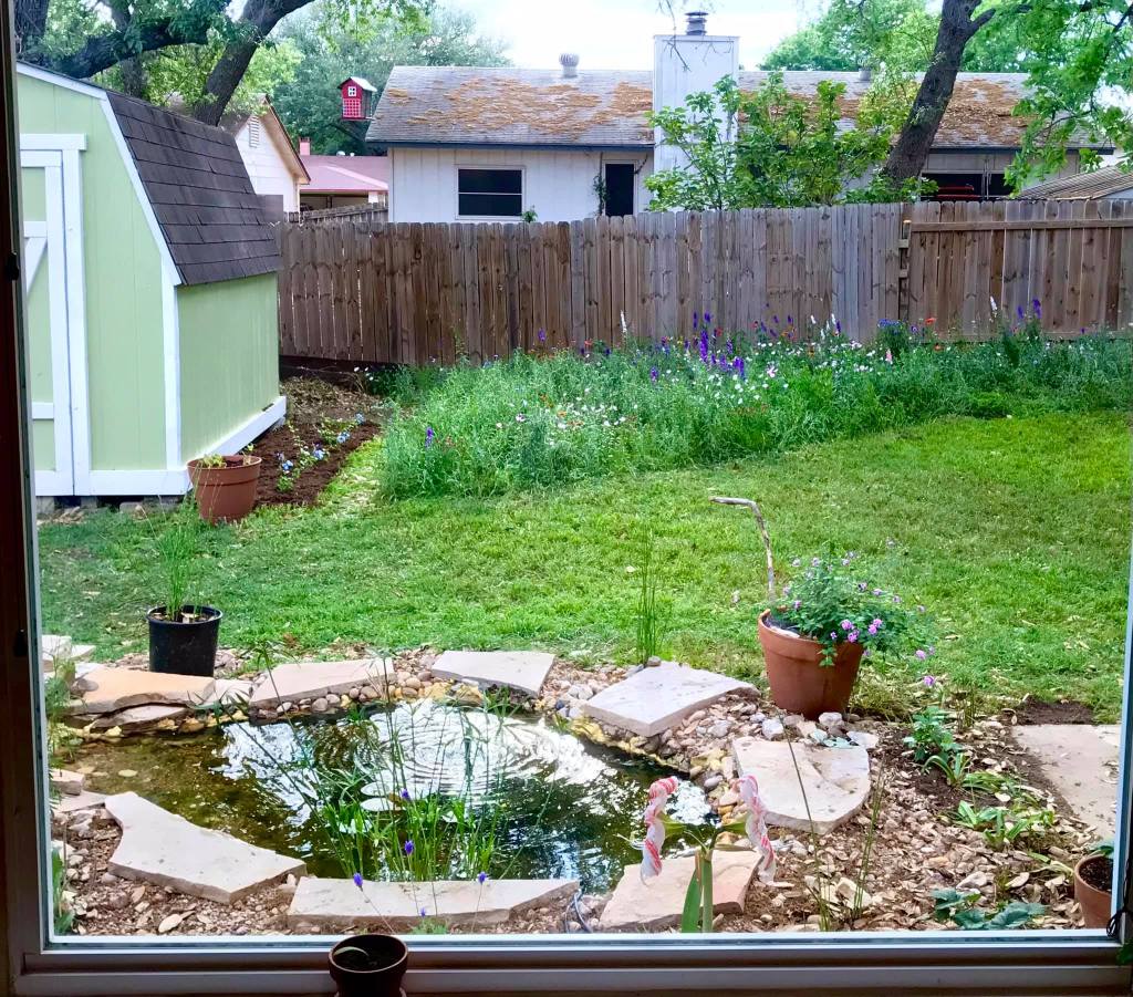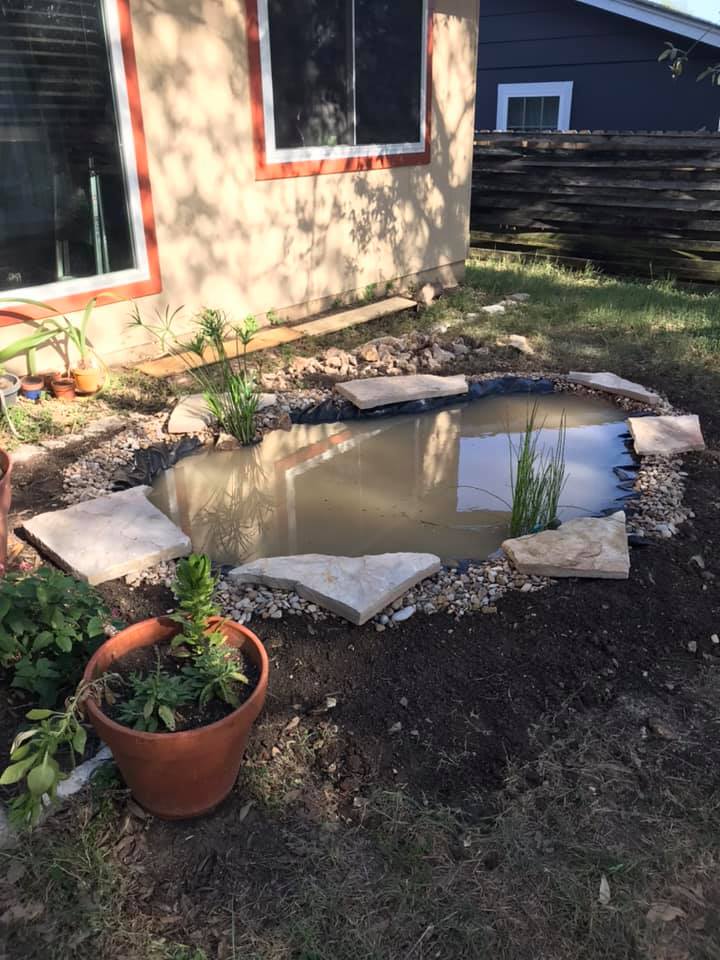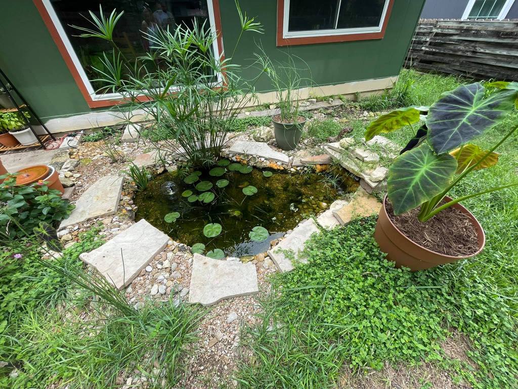 The pond has since grown into its own. The lilies are prolific; we have regular visits from birds and mammals such as raccoons, opossums, and skunks. There is also a non-trivial Gulf Coast Toad breeding population that trill nightly during the Spring and regularly lay eggs. We have also planted a pollinator garden and added seed and mealworm feeders to make the space even better for the birds. As a result, the backyard is always lively.