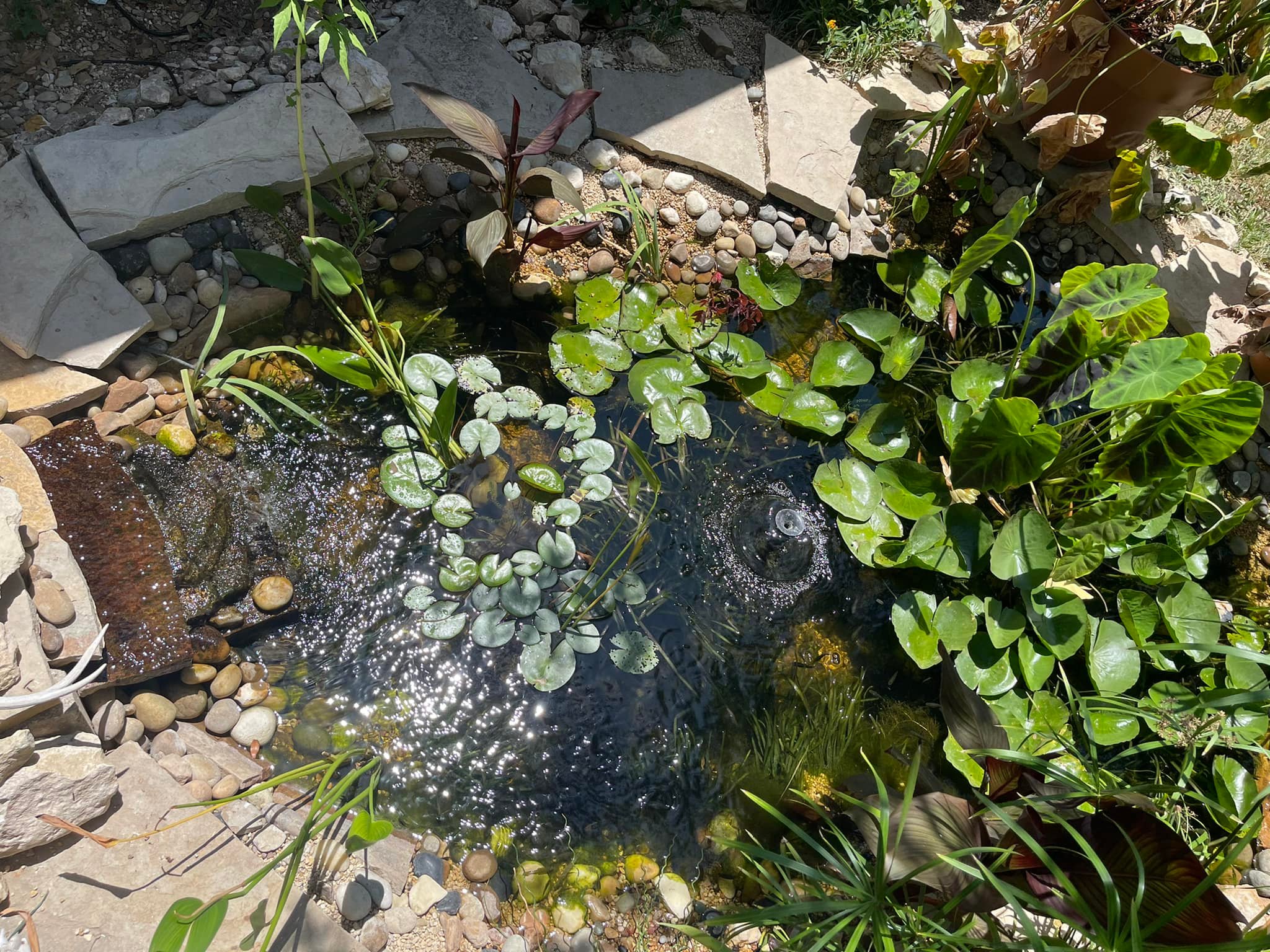 The pond has been a big part of why we fared well in the isolation of the pandemic. While we did not have many human visitors, we created a friendly space for feathered visitors. We sit in the air conditioning, have morning coffee, afternoon tea, or evening wine, and watch the goings-on. The birds can visit without being concerned about our presence.