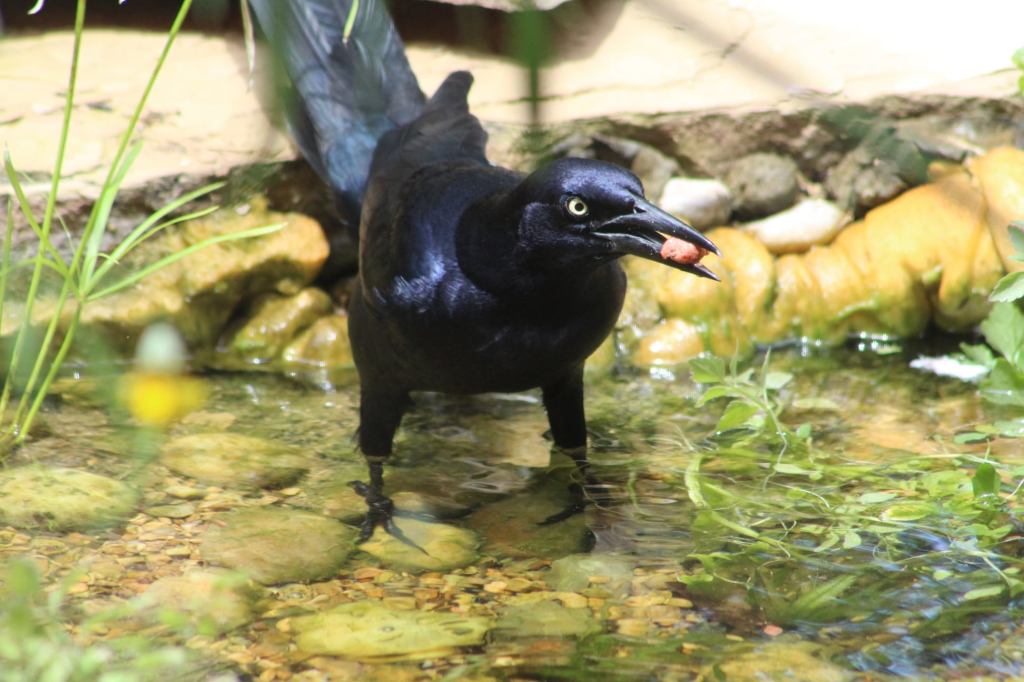 It did not take long for the birds to start visiting. First, we had great-tailed grackles and house finches: common sights around San Antonio. While the birds came in in droves, I struggled to find better ways to hide the liner and felt general displeasure with some of the decisions I made in the design. I created the pond without experience and used a lot of trial and error. As such, this meant a whole lot of learning on the job.